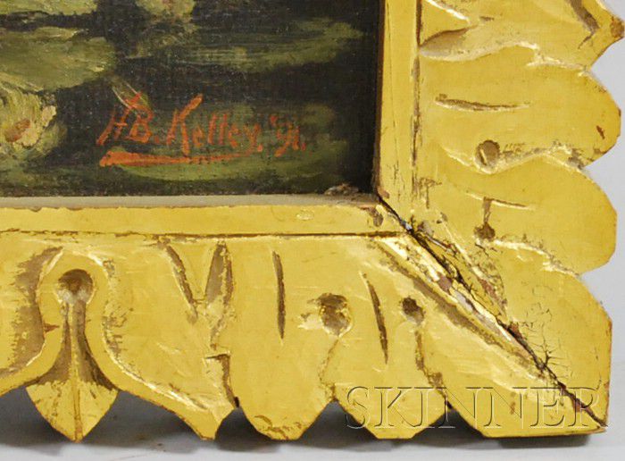 Nymph/Bather with Putto on a Stream Bank. Signed and dated "H.B. Kelley. '91." l.r., with a partial label from Charles J. Edmands, Dealer in Artists' Materials, Boston, on the stretcher. Oil on canvas, 23 x 16 1/2 in., framed. Condition: Minor paint losses, craquelure, surface grime.