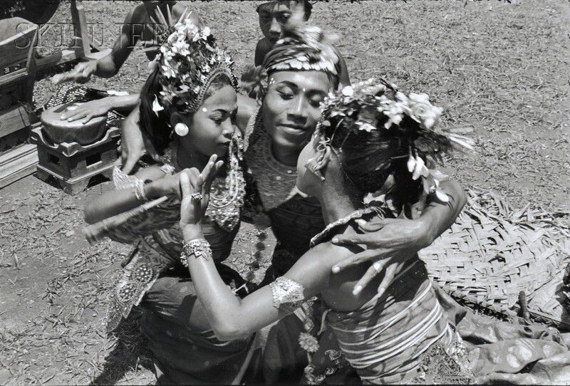 La danse Alloeng Kotjok, Sayan, Bali, Indonésie, 1949, a later printing. Signed "Henri Cartier-Bresson" in ink l.r., artist's copyright dry stamp l.l. Gelatin silver print on paper, image size 9 3/8 x 14 1/8 in. (23.7 x 35.8 cm),framed.