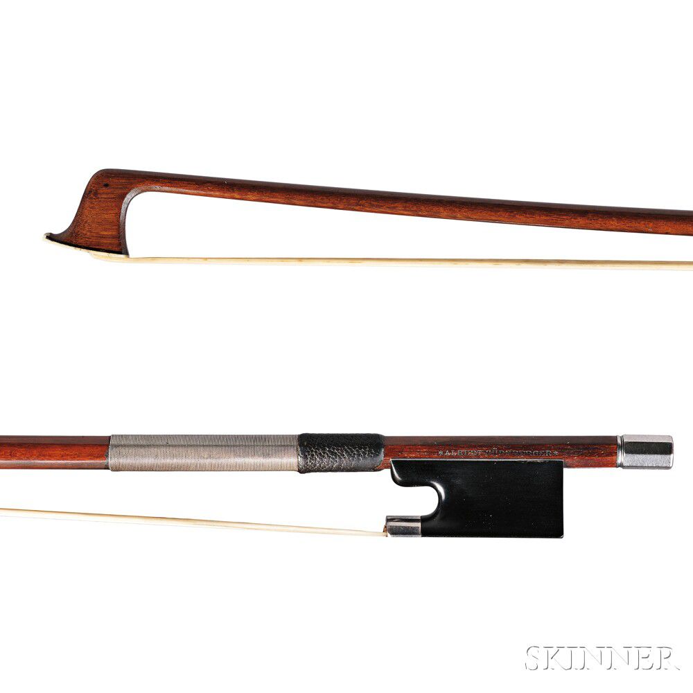 Silver-mounted Violin Bow, Carl Albert Nurnberger, the round stick stamped *ALBERT NURNBERGER*, and GERMANY, weight 58 grams.