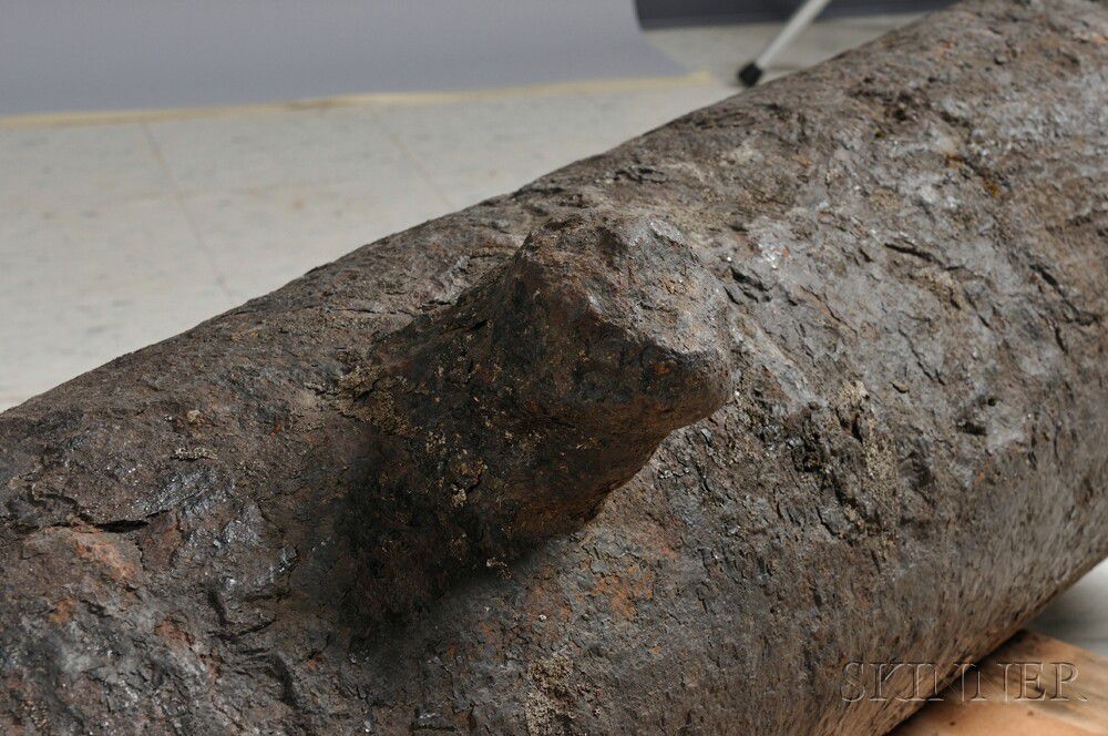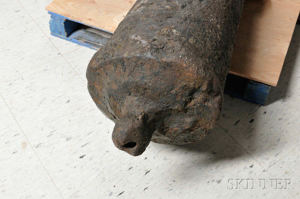 Cast Iron Napoleonic Cannon, France, early 19th century, (bore plugged with wood),lg. 95, bore dia. 4 in.