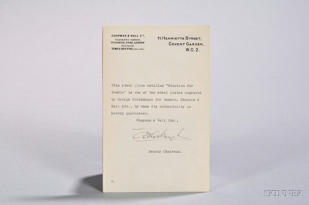 Original steel engraving, with a matted print and letter from the Deputy Chairman of Chapman and Hall authenticating the plate, housed in a custom box; the plate 8 x 5 in.