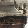 worm holes throughout case, some molding missing, ticking and keeping time but bell hammers not functioning.